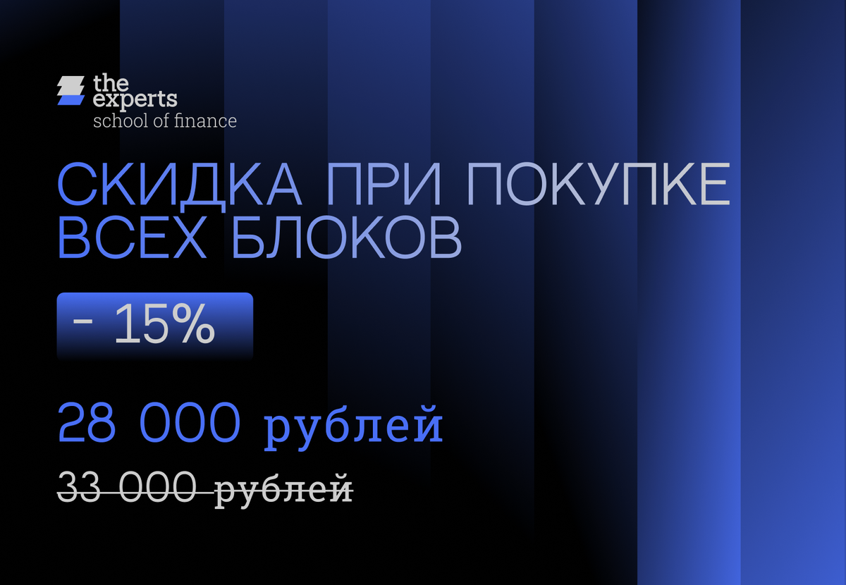 Открыта регистрация на годовую программу по корпоративным финансам EXPERT от School of Finance. Онлайн-лекции в группах, домашние задания, бизнес-кейсы и карьерная поддержка. Для студентов доступен грант, полностью покрывающий стоимость обучения. Хотите продолжить свой путь после INTRO? Узнайте подробности на сайте School of Finance.